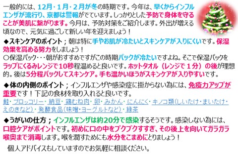 逆にとると、見た目の印象を変えることで、人に与える印象を変えることができ、さらに見られる印象が変わると心に変化が起こると言われています 個人レッスンでは、印象を変えるお手伝いをさせていただきます。新しい自分の発見してみませんか? *日常、ご自分でできるようになることを目的にしています。変身メイクやトレンドメイクで はありません。